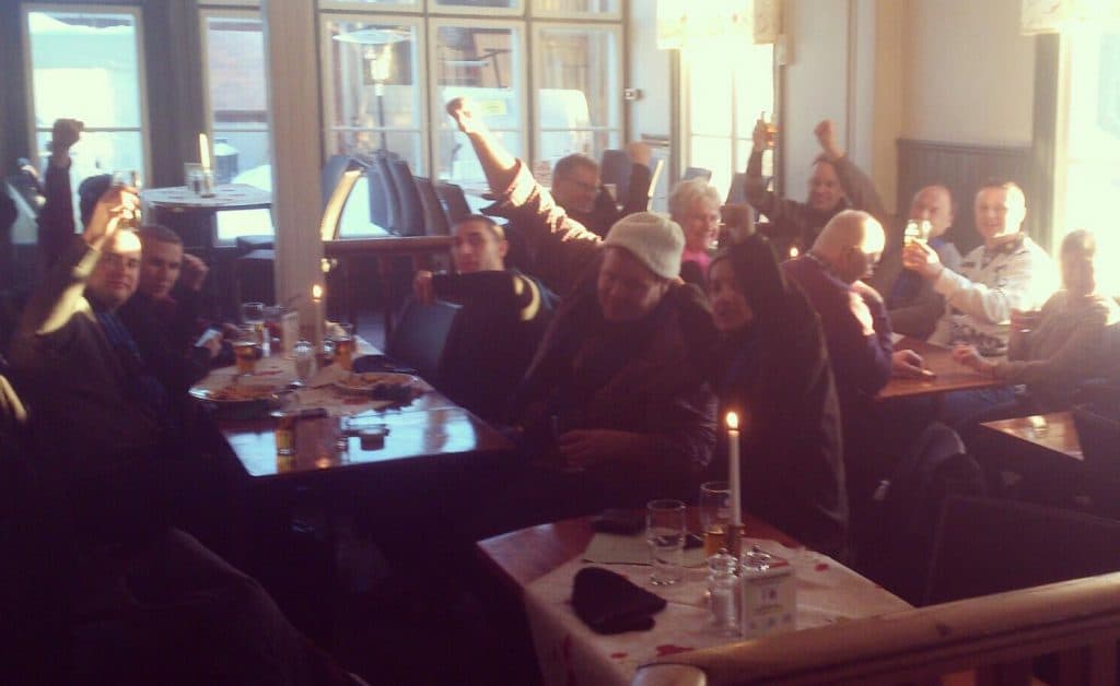 Västra Sidan hade ett tag en fin tradition med en mellandagsbuss; en bortaresa till varthelst blåsvart spelade. Och så fick vi också iväg vår hittills enda storbuss till Lidköping, och det blev – trots torsk och vidrig hall – till en minnesvärd resa. Den långa bussresan gav gott om tid för öldrickande, det var hög stämning, både vokala och visuella hallprotester, och åtminstone till en början riktigt bra blåsvart bandy. Villa tog ledningen nästan direkt på avslag, men sedan kom inte mindre än fyra raka Siriusmål. Först klämde Broberg in en hörna, och därefter kom tre vackra bandymål där blåsvart visade upp både elegans och effektivitet. Hade Sirius kunnat hålla i denna ledning lite längre hade detta kanske kunnat sluta med en jätteskräll, men istället bjöds hemmalaget in i matchen efter två blåsvarta tabbar: Wigren passade bollen i gapet på Daniel Andersson som satte 2-4, minuten efter kom 3-4, och precis innan paus spelade även Azarenko fel och David Karlsson kunde kvittera. Efter ett till snabbt Villamål spelade Åhlén fram Broberg till 5-5 på ett frislag, men sedan blev det lite för naivt och slarvigt från Sirius, och så trillade det in fyra Villamål på drygt tio minuter. Avgjort? Inte riktigt kanske, blåsvart kom tillbaka ännu en gång, och när Maya satte 9-7 med tio minuter kvar såg det nervöst ut i hemmalaget, och det var inte förrän David Karlsson satte sitt fjärde mål på stoppitsch tajm som det var helt avgjort. En stark insats från blåsvart var det, särskilt som man saknade den skadade trion Max, Putte och Pirre, men i tabellen sjönk vi ändå ytterligare. Sirius trea från slutet, med tre pinnar upp till Vänersborg på okvalplats, och hela sex upp till Kungälv på slutspelsplats.